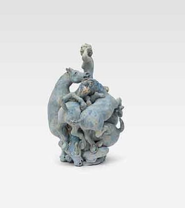 Michael Kalmbach (*1962 in Landau), deutscher Maler und Bildhauer, studierte an der Städelschule bei Michael Croissant. In seinem Werk setzt er sich teils satirisch-grotesk, teils melancholisch mit zwischenmenschlichen Beziehungen, mit Familie, mit Kind- und Erwachsensein auseinander. Seine Skulpturen werden in komplexen Installationen inszeniert, die einen eigenen Kosmos bilden und wie Staatsgebilde wirken. Kalmbach erhielt u.a. den Karl-Ströher-Preis und stellte in zahlreichen Einzel- und Gruppenausstellungen aus. Seine Werke sind in renommierten Sammlungen vertreten, darunter das MMK Frankfurt, Kolumba Köln und das Kunstmuseum Basel.